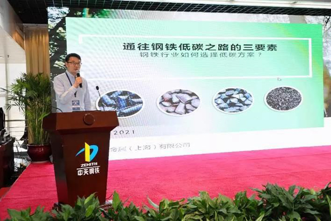達涅利冶金設備(中國)有限公司銷售總監趙水生對低碳冶金—ENERGIRON直接還原鐵技術進行了介紹。在詳細介紹該工藝后,分析了高爐-轉爐(BF-BOF)流程與直接還原鐵-電爐流程(ENERGIRON-EAF)的CO2排放詳細對比。