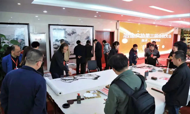 圖為冶金文協美術、書法筆會現場