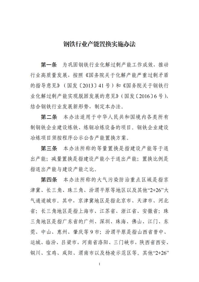 附:《鋼鐵行業(yè)產能置換實施辦法》全文