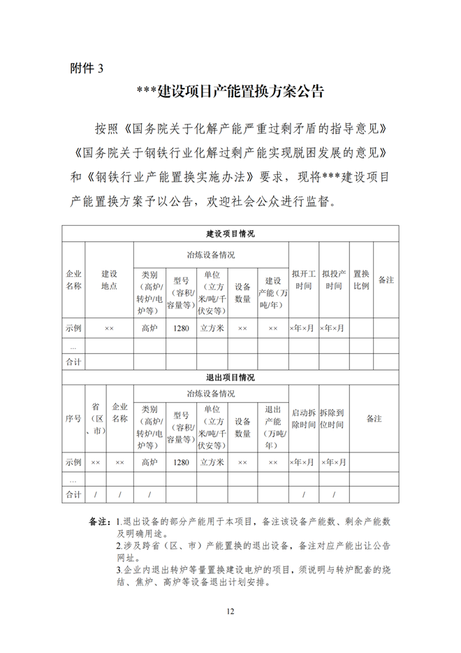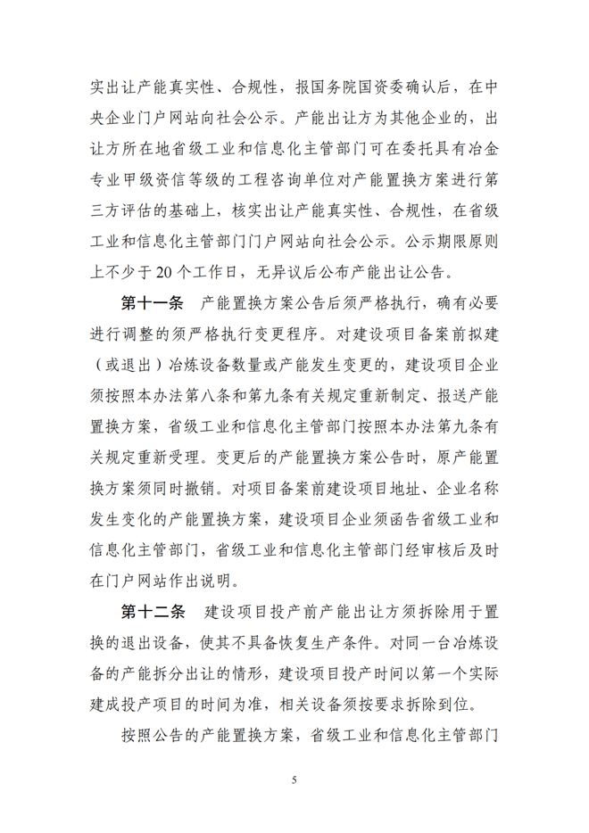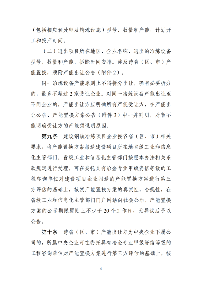 二是完整保留了退出項目信息,即退出項目所在地區(qū)、企業(yè)名稱、退出的冶煉設備型號、數量和產能,以及拆除時間安排等;涉及跨省(區(qū)、市)產能置換,須附產能出讓公告。