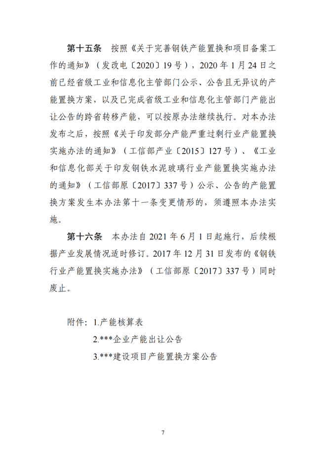 為了提高產能置換工作效率,促進產業(yè)政策的有效銜接和平穩(wěn)過渡,對于2020年1月24日之前已經履行省級工業(yè)和信息化主管部門公示且無異議或公告的產能置換方案,以及已完成省級工業(yè)和信息化主管部門產能出讓公告的跨省轉移產能,可按原辦法即工信部原〔2017〕337號文件繼續(xù)執(zhí)行;對本辦法發(fā)布之后,按照原辦法已完成公示、公告的產能置換方案需要進行變更的,以及按照原辦法未完成省級工業(yè)和信息化主管部門公示的,均須遵照本辦法重新開展產能置換工作。