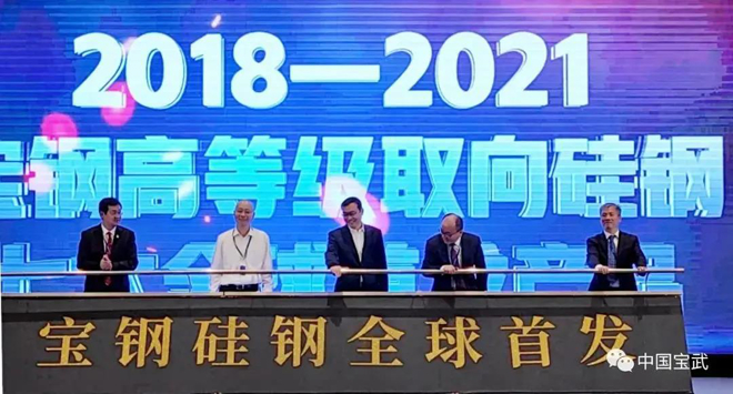 在5月13日舉行的寶鋼股份第四屆取向硅鋼應用技術大會上,B18P080、B18R060、35Q155-Z、B18R055、B20R060、35Q155-Y、B23HS075等寶鋼股份自主研發的高等級取向硅鋼7項全球首發產品揭幕。這是寶鋼股份自2018年舉行第三屆取向硅鋼應用技術大會以來,高等級取向硅鋼全球首發產品的集中呈現,這些首發產品對推動電力行業高質量發展具有重要意義。
