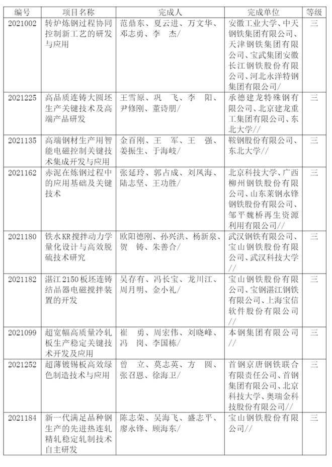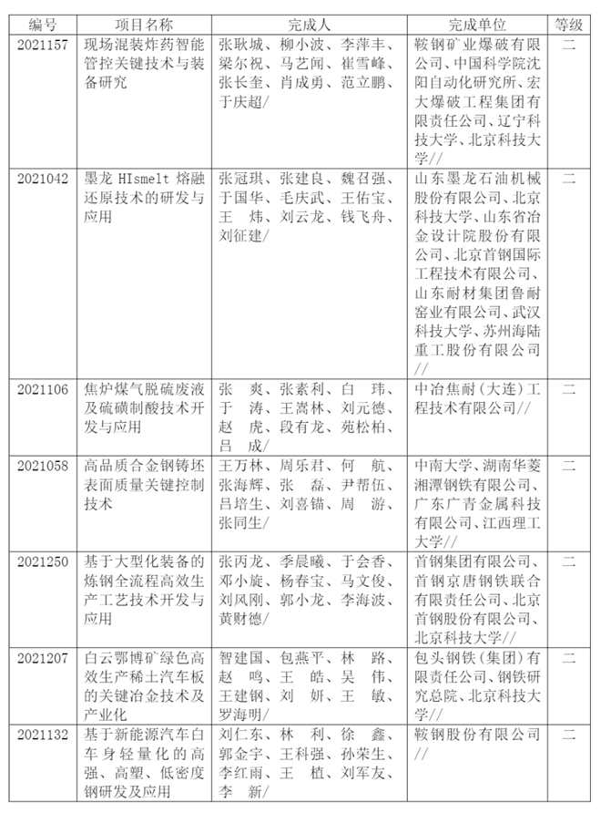 2021年冶金科學(xué)技術(shù)獎(jiǎng)專業(yè)評(píng)審?fù)扑]獲獎(jiǎng)項(xiàng)目發(fā)布!