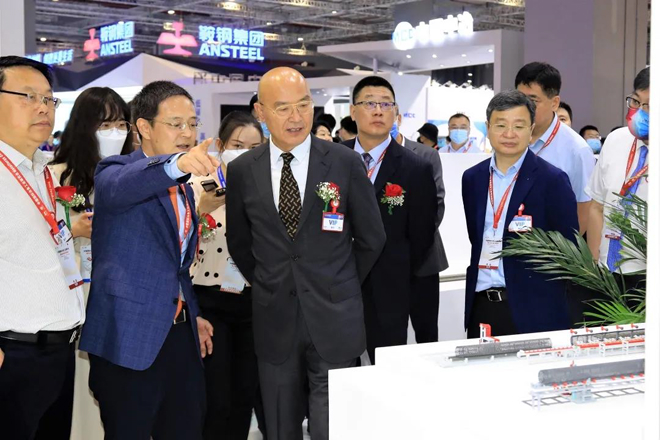 圖為何文波一行參觀鞍鋼集團展臺