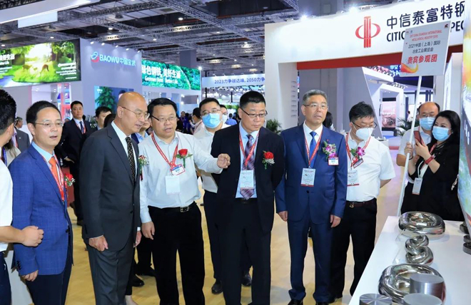 圖為何文波一行參觀中信泰富特鋼展臺