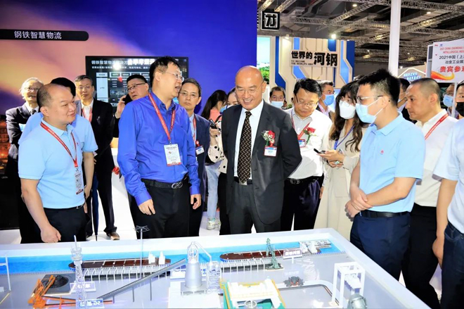 河鋼集團副總經理李毅仁陪同何文波參觀了河鋼展區,并通過家電板、釩鈦等高端產品實物,突出展示集團近年來以全球、全產業鏈理念為引領,加快推進“鋼鐵向材料”“制造向服務”轉型升級的高質量發展成就。何文波對此給予高度肯定,并贊揚河鋼集團家電彩板在卡薩帝等高端品牌上的顏值達到了“創新引領”的水平。