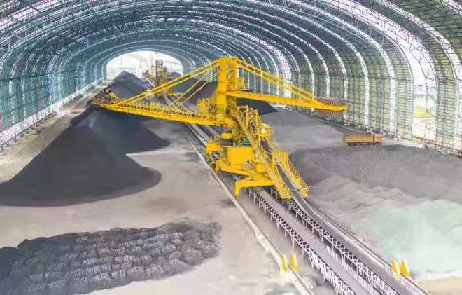 原料場主要承擔著山鋼日照公司各種大宗原燃物料的接卸、儲存、供應任務。接卸及中轉的物料種類近20種,年中轉量2000多萬噸,平均作業率85%以上。物料實現全封閉管理,一個封閉儲煤棚,儲煤量20萬噸;兩個儲礦棚,儲存量132萬噸。