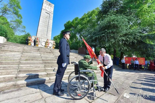 當已經(jīng)90多歲高齡、新中國成立前入黨的老黨員、抗日老戰(zhàn)士、萍安鋼鐵離休干部朱江同志,將活動主題旗授予遼寧方大集團董事、副總裁,方大鋼鐵董事長,萍安鋼鐵董事長黃智華同志時,全場人員無不動容,老人的眼角噙著激動的淚花。