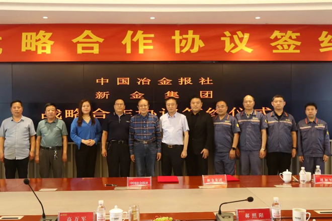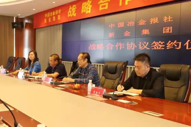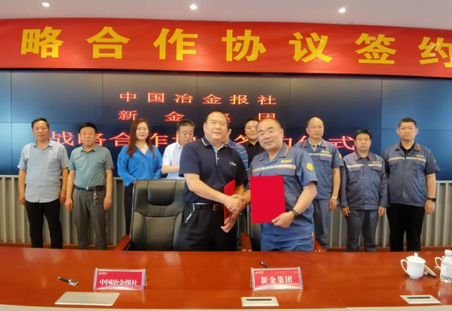 5月25日,新金集團(tuán)鋼鐵公司執(zhí)行總經(jīng)理陳丹峰與中國(guó)冶金報(bào)社黨委書記、社長(zhǎng)陳玉千分別在協(xié)議書上簽字,雙方就此建立長(zhǎng)期戰(zhàn)略合作關(guān)系。