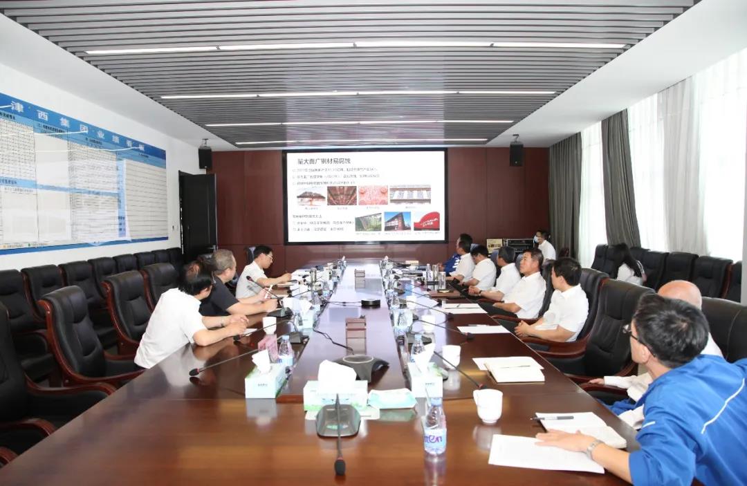 圖為董瀚與津西集團相關領導和部門就稀土耐腐蝕鋼工藝和技術進行交流