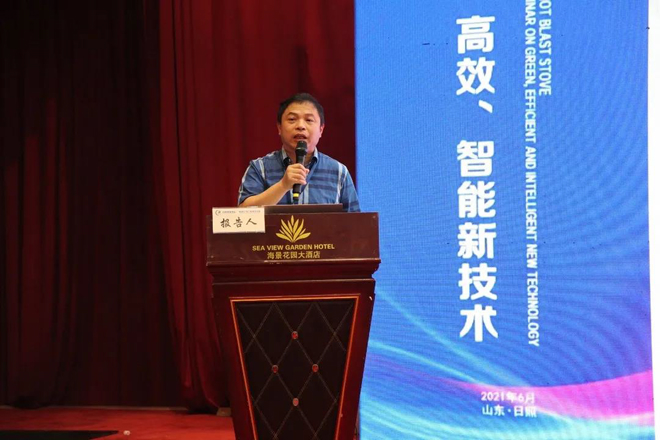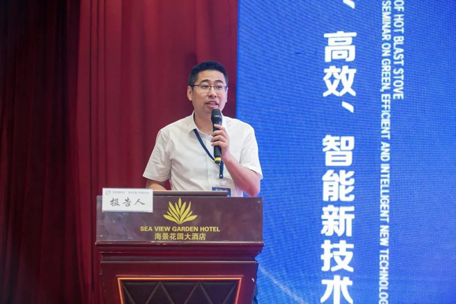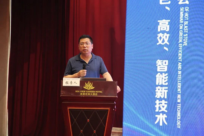 山東省冶金設計院股份有限公司副院長劉紅軍作“綠色、智能頂燃式熱風爐的探索與應用”報告