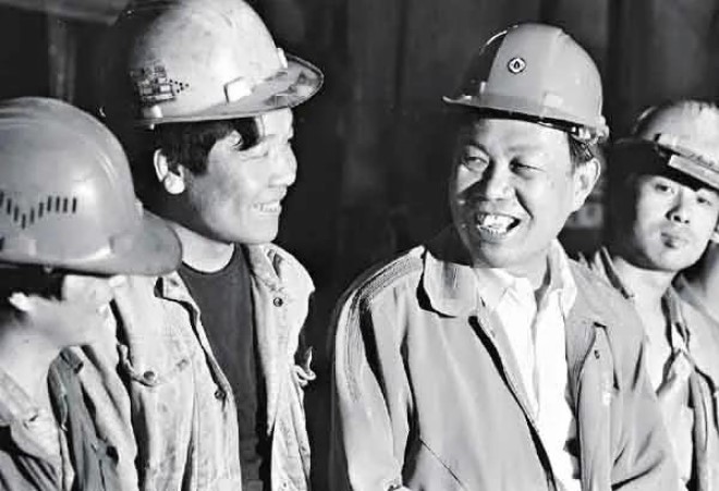 圖為“邯鋼經(jīng)驗(yàn)”創(chuàng)造者劉漢章(左三)與邯鋼工人在一起。(本報(bào)資料圖片)