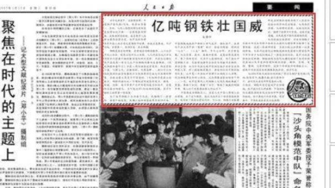 圖為《人民日報(bào)》發(fā)表的《億噸鋼鐵壯國威》文章(圖片來源于網(wǎng)絡(luò))