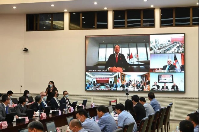 首鋼集團總經理趙民革;達涅利集團董事長貝內代蒂、首席執行官賈科莫,達涅利中國聯合CEO裴卓帝;TMEIC集團社長山脅雅彥等出席了簽字儀式。除了中國北京會場,此次儀式也分別在意大利烏迪內、日本東京用視頻方式同步舉行。首鋼京唐公司黨委書記、董事長邱銀富主持了簽字儀式。