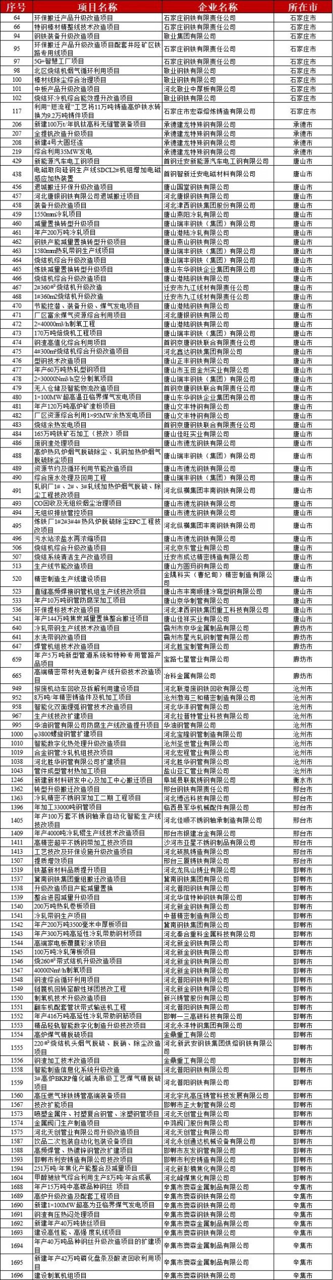 7月5日,河北省工信廳發布了關于印發《2021年河北省工業企業重點技術改造項目(千項技改項目)計劃》的通知。通知中重點技術改造項目合計1708項,計劃總投資4379.2億元,其中涉及鋼鐵冶金及相關行業127項。