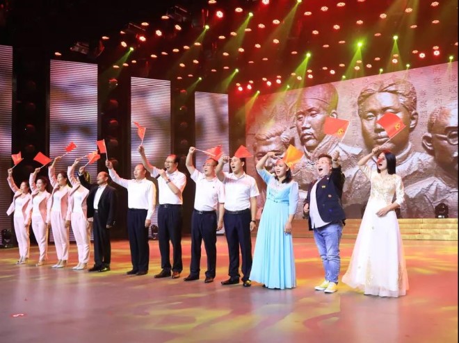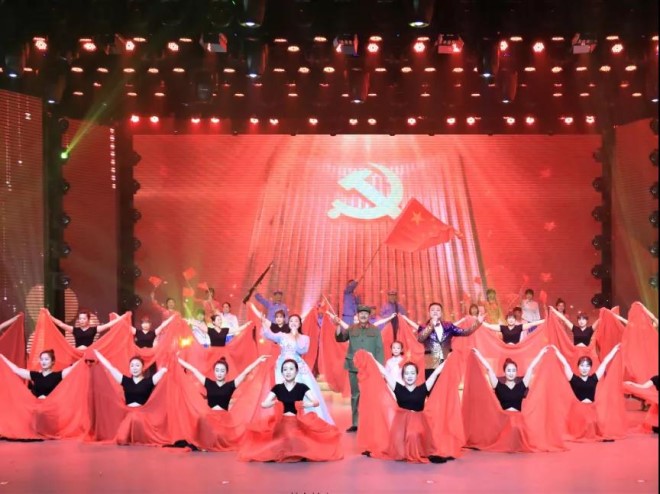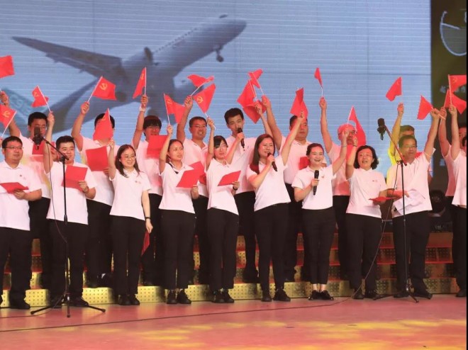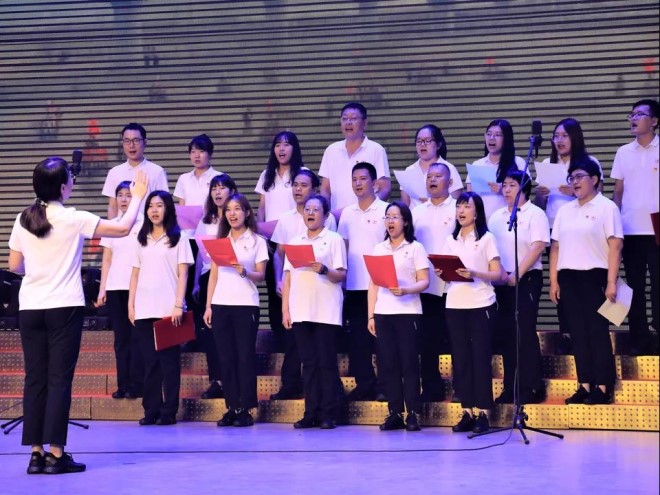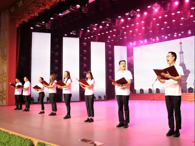 聯(lián)歡活動開始后,雙方表演了大合唱、詩朗誦、笛子獨奏、紅色歌舞等豐富多彩的節(jié)目,宏興俱樂部沉浸在一片紅色的海洋中。一首首振奮人心的紅歌、一段段優(yōu)美的舞蹈,為中國共產(chǎn)黨百歲華誕獻(xiàn)上一份深深祝福。