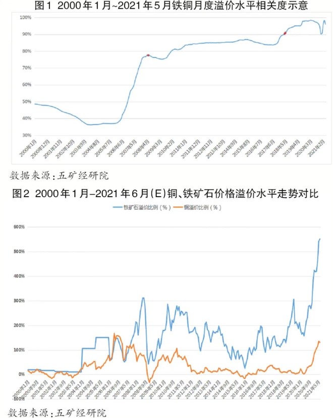 數(shù)據(jù)分析顯示:2000年以來,鐵礦石與銅在成本溢價(jià)(價(jià)格—成本)方面的相關(guān)度越來越高,且在2018年5月后相關(guān)度始終高于90%。數(shù)據(jù)驗(yàn)證的結(jié)果說明,鐵礦石作為黑色金屬原料的突出代表,正在與銅類似地走上金融屬性主要決定價(jià)格的定價(jià)模式。