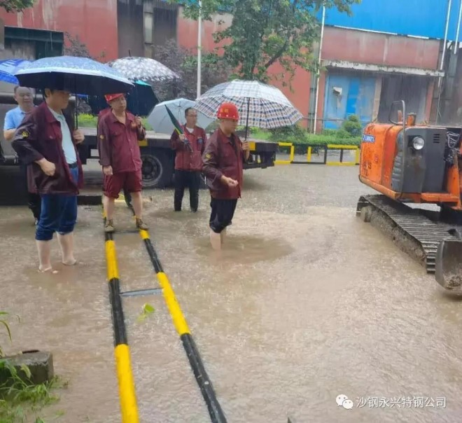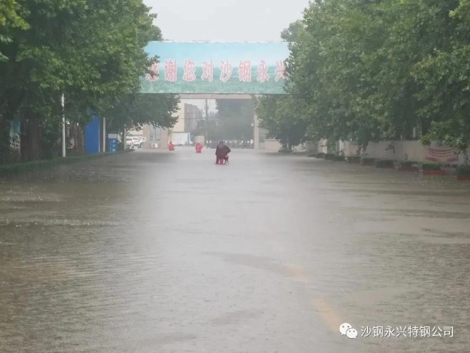 圖為沙鋼永興特鋼廠區(qū)積水路段