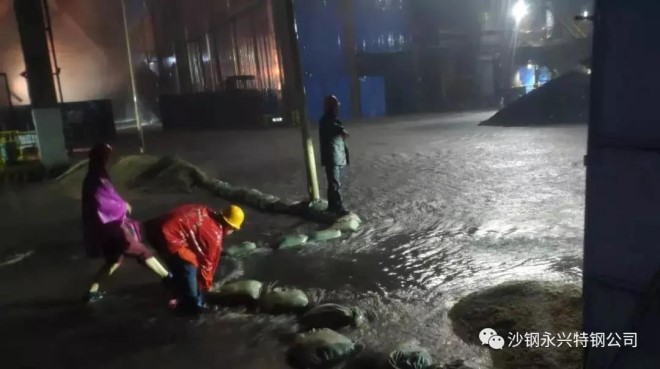 圖為沙鋼永興特鋼防汛抗洪搶險救援現(xiàn)場