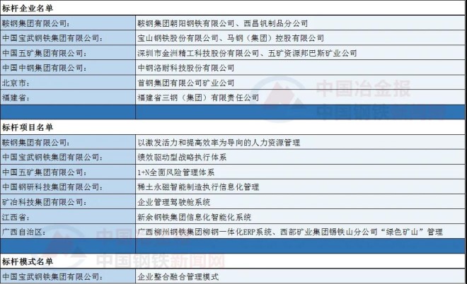 “三個標桿”名單中有多家鋼鐵企業入選,具體名單如下: