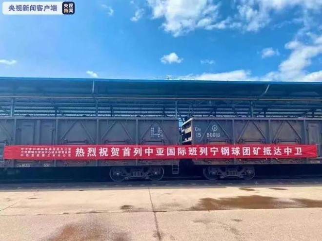8月16日上午11時,在寧夏中衛市,一輛滿載10000噸球團鐵礦石的27008次多聯快車緩緩駛入迎水橋貨場。此次班列從哈薩克斯坦鐵路出發,經由新疆烏魯木齊局阿拉山口站駛往中衛迎水橋貨場,全程約2133公里,運行時間6天。這是中亞至中衛首列大宗貨物國際班列,也是寧夏迎來的首個萬噸大宗貨物國際班列。