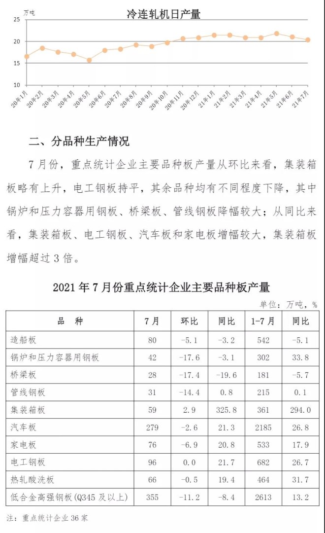 7月重點統計企業板帶材生產情況
