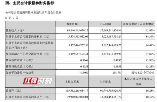 華菱鋼鐵經營業績創同期歷史最優。8月27日晚間披露的半年報顯示,今年上半年,公司實現營業收入848.46億元,同比增長62.97%;歸屬于上市公司股東的凈利潤55.75億元,同比大增84.39%。其中,主要子公司華菱湘鋼、華菱漣鋼和汽車板公司報告期凈利潤同比分別增長65.26%、124.61%、54.55%,均創同期歷史最高水平。