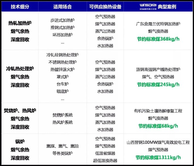 中冶南方熱工公司擁有成熟的余熱回收技術(shù),根據(jù)工業(yè)爐煙氣熱能品位,利用多級高效熱交換裝備實現(xiàn)對各類工業(yè)煙氣余熱的分級回收、梯級利用。其中鍋爐煙氣最低排煙溫度可降低至50℃。