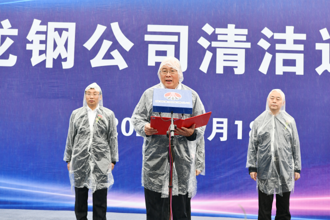 韓城市人民政府副市長郭繼鋒,國家電投集團綠電交通產(chǎn)業(yè)創(chuàng)新中心主任、上海啟源芯動力科技公司總經(jīng)理郭鵬,中國兵器工業(yè)集團北奔重型汽車集團總經(jīng)理、黨委副書記郭平曉,陜西汽車控股集團有限公司副總經(jīng)理楊志剛,龍鋼公司黨委書記、董事長陳驍分別致辭,龍鋼公司總經(jīng)理劉安民主持儀式。