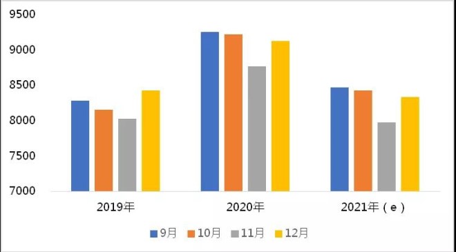 圖3 2019年、2020年以及2021年9-12月份粗鋼產量(e-預測)