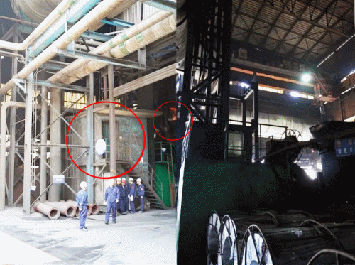 在該鋼鐵公司煉鋼廠轉爐的爐下鄰近區域,明查暗訪組發現1處操作室的門和1處備件庫房的門均朝向熔融金屬吊運側。安全專家指出,前述建筑物的門朝向熔融金屬吊運側與現行安全標準規定不符,存在較大安全風險,一旦發生熔融金屬罐體傾翻、傾覆事故,極有可能威脅作業人員生命安全。