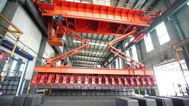 圖為“沈冶機械”生產的鋁電解多功能機組在用戶現場工作中