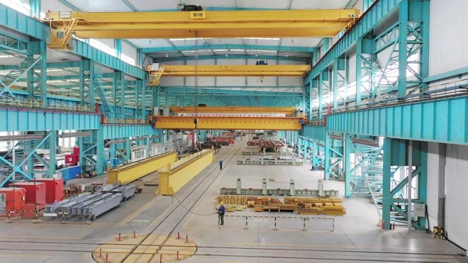 圖為“沈冶重裝”冶礦設備車間球磨機裝配試車現場