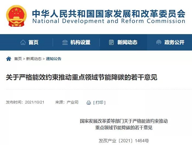 10月21日,國家發展改革委、工業和信息化部、生態環境部、市場監管總局、國家能源局五部門對外發布《關于嚴格能效約束推動重點領域節能降碳的若干意見》(以下簡稱《意見》),并附上了《冶金、建材重點行業嚴格能效約束推動節能降碳行動方案(2021-2025年)》(以下簡稱《行動方案》),提出到2025 年,通過實施節能降碳行動,鋼鐵、電解鋁、水泥、平板玻璃行業能效達到標桿水平的產能比例超過30%,行業整體能效水平明顯提升,碳排放強度明顯下降,綠色低碳發展能力顯著增強。鼓勵國有企業、骨干企業發揮引領作用,開展節能降碳示范性改造。改造過程中,在落實產能置換等要求前提下,鼓勵企業實施兼并重組。