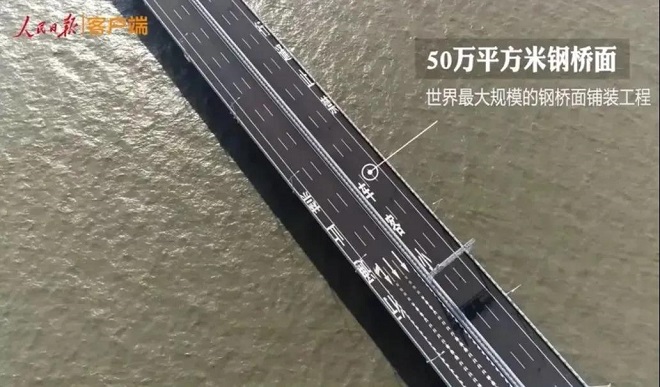 50萬(wàn)平方米鋼橋面:為當(dāng)今世界最大規(guī)模的鋼橋面鋪裝工程。