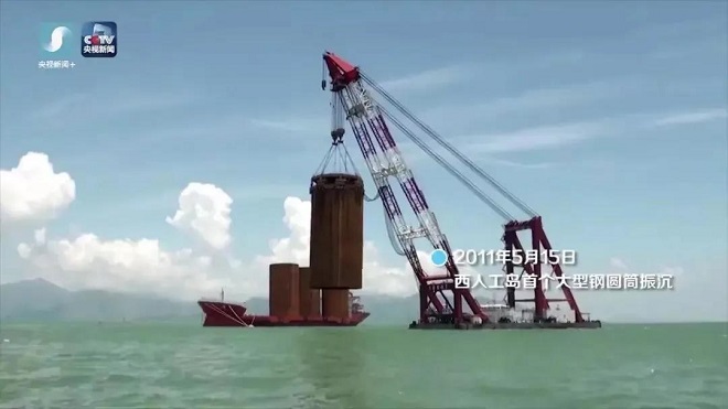 人工島鋼圓筒:拋棄以往拋石填海長(zhǎng)工期、影響海洋環(huán)境的傳統(tǒng)做法,創(chuàng)新性地以大直徑的鋼圓筒插入到海底并固定在海床上。
