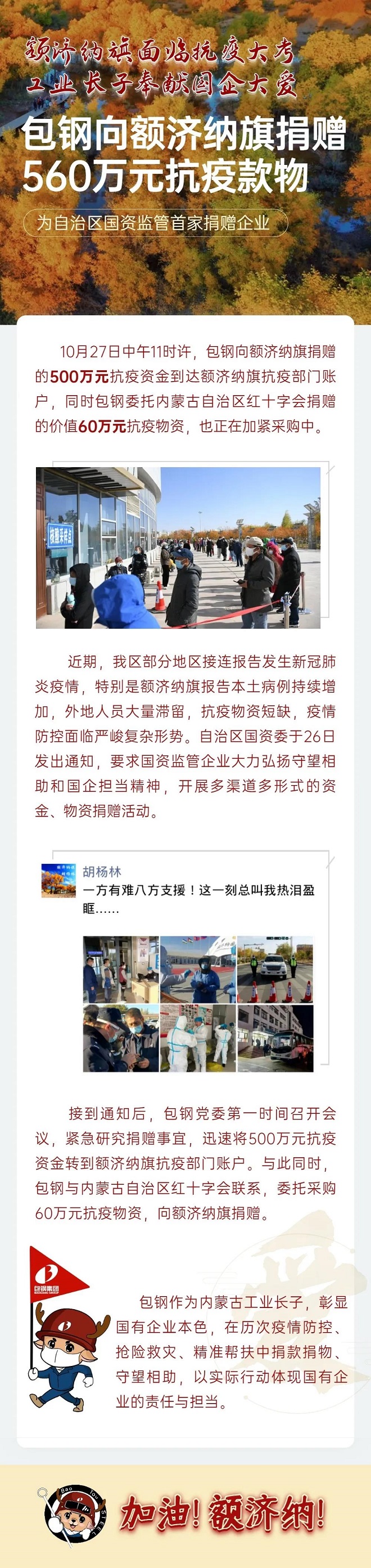 加油!胡楊林!!包鋼向額濟納旗捐贈560萬元抗疫款物