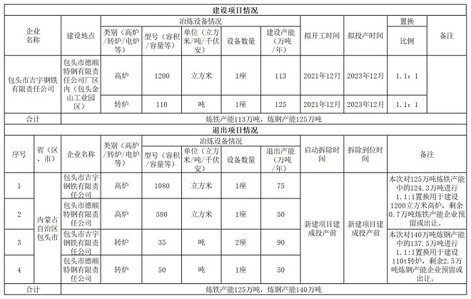 07包頭市吉宇鋼鐵實(shí)施整合搬遷綠色升級項(xiàng)目鋼鐵產(chǎn)能置換方案