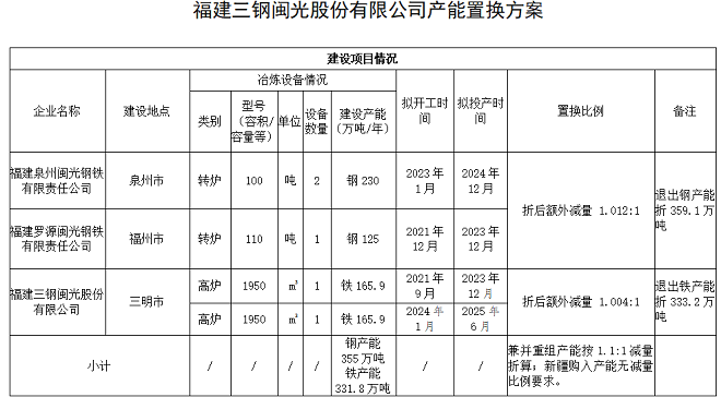 10福建三鋼閩光股份有限公司產(chǎn)能置換方案