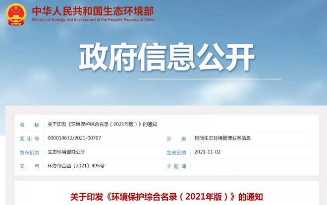 關于印發《環境保護綜合名錄(2021年版)》的通知。