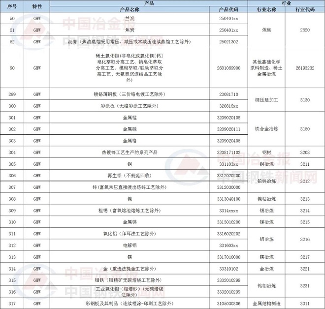 《環境保護綜合名錄(2021年版)》中,與鋼鐵冶金行業相關的以下14項產品屬于“高污染”產品,而煉鐵(行業代碼3210)及煉鋼(行業代碼3220)產品則不屬于“高污染”及“高環境風險”產品。