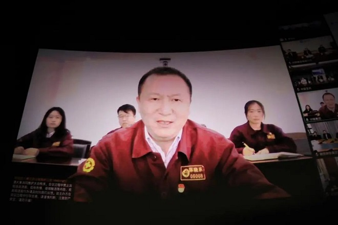 圖為楊海峰通過視頻連線發言