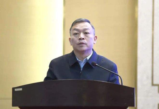 圖為中國記協黨組成員、書記處書記張百新在大會講話。