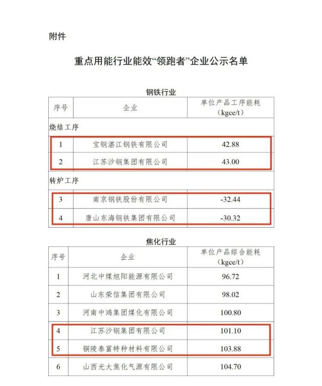 2021年12月31日,工業和信息化部網站對2021年度重點用能行業能效“領跑者”企業名單進行公示。其中,湛江鋼鐵、沙鋼、南京鋼鐵、唐山東海鋼鐵、中信泰富特鋼旗下銅陵泰富特種材料榜上有名,成為各單項的優勝者!