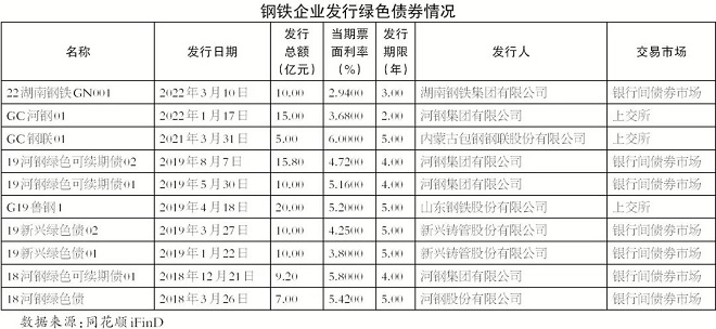 綠色債券離鋼鐵企業有多近?2022年3月11日,湖南鋼鐵集團有限公司綠色債券在銀行間債券市場成功發行,3年期利率僅為2.94%。如此低的發行利率大大地提振了鋼鐵企業的發債信心。
