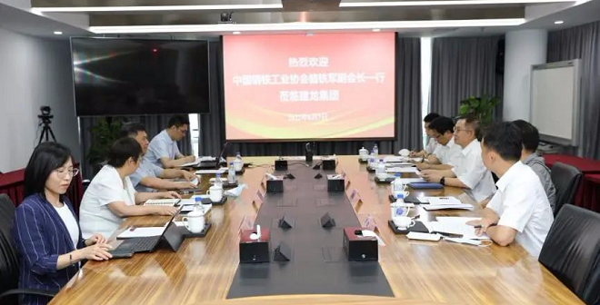 6月7日上午,中國鋼鐵工業協會副會長駱鐵軍一行赴北京建龍重工集團有限公司開展專題調研,建龍集團董事長、總裁張志祥接待了協會一行,雙方就“基石計劃”項目進展及近期生產運行情況進行了充分交流。建龍集團副總裁黃丹、工程技術部、行政部有關同志,鋼鐵協會總經濟師王穎生及市場調研部、規劃發展部有關同志參加了此次調研。