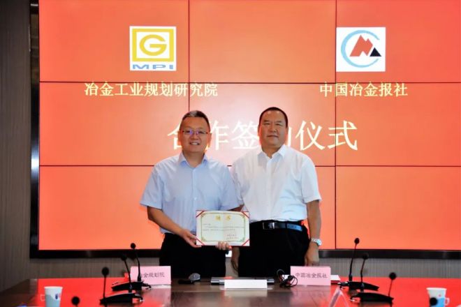 6月28日,冶金工業規劃研究院(以下簡稱冶金規劃院)與中國冶金報社就進一步深化戰略合作簽訂協議。未來,雙方將基于多年友好合作關系和各自獨特優勢,深化合作內容、拓展合作領域、創新合作模式,強強聯合,共強鋼鐵,用規劃和文化的力量共同為鋼鐵行業、鋼鐵企業高質量發展貢獻力量。