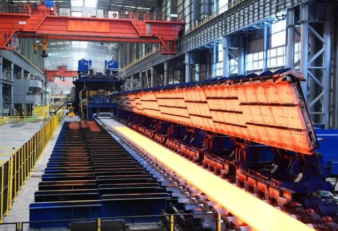 2021年10月11日拍攝的河北省樂亭經濟開發區河鋼集團唐鋼公司的軋鋼車間。新華社記者 楊世堯 攝