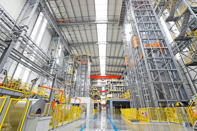 河鋼全面實(shí)施“鋼鐵向材料、制造向服務(wù)”改革創(chuàng)新,駛出產(chǎn)業(yè)升級(jí)、產(chǎn)品高端的高質(zhì)量發(fā)展“加速 度”。圖為河鋼高強(qiáng)汽車(chē)板生產(chǎn)線。