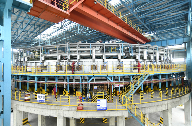 圖為全球最大的轉(zhuǎn)底爐循環(huán)利用含鐵、鋅塵泥的示范工程